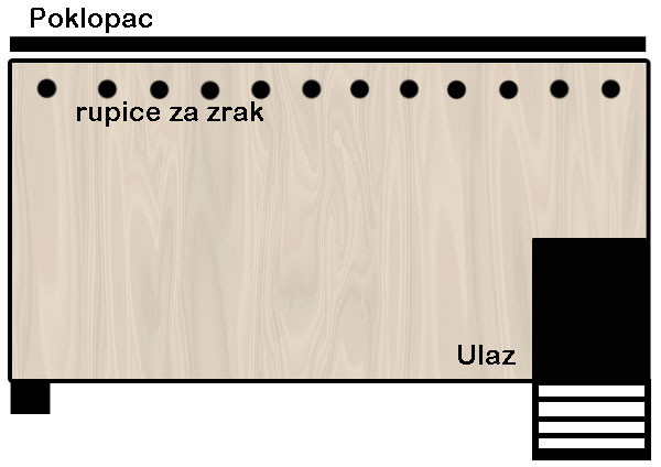 Vjetrovita strana prostora bi trebala biti zaštićena sa čvrstim zidom od drveta; na tom mjestu bi onda bio i dobar položaj za kućicu. Pri jakim kišama ili snijegu, potrebno je takvu nastambu djelomično prekriti sa ceradom.